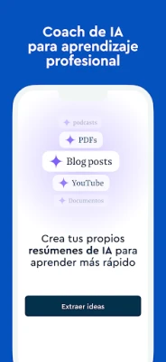 Lleva tu aprendizaje más allá con Blinkist Pro y su innovadora Inteligencia Artificial, que te permite sintetizar al instante artículos, PDFs y vídeos externos, abriendo un universo de información personalizada a tu alcance. Mantente inspirado con dosis diarias de sabiduría y explora temas complejos a través de nuestras Guías de audio lideradas por expertos. La flexibilidad es clave: aprende sin conexión a internet descargando tus resúmenes, o envía tus favoritos directamente a tu Kindle para una lectura ininterrumpida. Blinkist es la herramienta esencial para mentes curiosas con poco tiempo, reconocida por su conveniencia y su capacidad de hacer el aprendizaje divertido.
