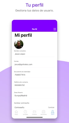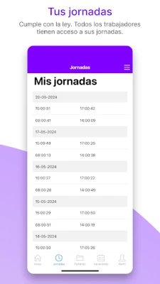 Para los profesionales, la agilidad y el acceso a su información son primordiales. Con esta aplicación, iniciar y finalizar la jornada laboral se convierte en un proceso rápido y sin complicaciones, directamente desde su dispositivo. Los empleados pueden acceder fácilmente a su historial completo de jornadas, revisar sus vacaciones pendientes y consultar sus nóminas en cualquier momento y lugar, fomentando la autonomía y reduciendo las consultas administrativas. Esta herramienta crea un puente de comunicación y eficiencia, simplificando la vida laboral de todos. Experimenta la transformación en la gestión de tu equipo.