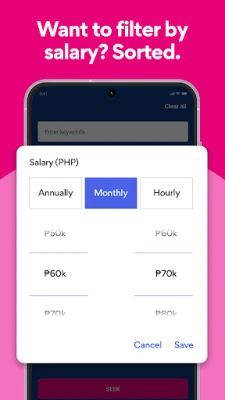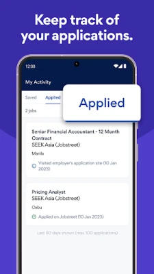 Experimenta una búsqueda de empleo sin precedentes, impulsada por una IA que comprende tus ambiciones. Jobstreet refina tus opciones con emparejamientos personalizados, basados en tu actividad e intereses, destacando puestos que se alinean perfectamente con tus habilidades y metas profesionales. Recibe notificaciones instantáneas sobre vacantes cruciales y ofertas que no querrás perder. Además, nuestras herramientas intuitivas simplifican cada paso: filtra por ubicación, salario o sector con facilidad, envía solicitudes con un solo toque desde cualquier lugar y supervisa el progreso de tus candidaturas en tiempo real a través de un panel dedicado. Explora un vasto universo de oportunidades, desde roles locales hasta opciones remotas o híbridas en ocho mercados asiáticos.