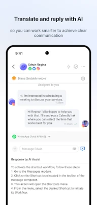 Potencia la colaboración de tu equipo con herramientas diseñadas para la eficiencia. Con respond.io, asignar o reasignar conversaciones a otros agentes es sencillo, y añadir comentarios internos proporciona el contexto vital para una atención al cliente cohesionada y bien informada. Además, supera las barreras lingüísticas y mejora la calidad de tus respuestas gracias a nuestra asistencia de IA, que te ayuda a redactar mensajes inteligentes y a traducir conversaciones en tiempo real. Ofrece experiencias excepcionales, sin importar el idioma.