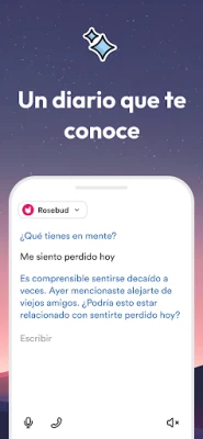Rosebud es tu compañero de autocuidado con IA. Esta herramienta de escritura reflexiva y autorreflexión, recomendada por terapeutas, apoya tu bienestar emocional. Rosebud aprende de tus entradas, ofreciendo sugerencias personalizadas e ideas para tu crecimiento.