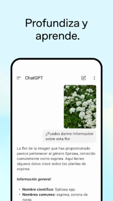 Lleva contigo un compañero conversacional capaz de mucho más. A través del intuitivo modo de voz de ChatGPT, simplemente toca el ícono de los auriculares para dialogar libremente, ya sea para improvisar un relato fascinante que arrulle a tus pequeños o para zanjar esas animadas discusiones familiares en la mesa. ¿Necesitas descifrar una antigua receta familiar garabateada o desentrañar los secretos de un monumento capturado en una imagen? La función de carga de fotos te permite interactuar visualmente, transformando tus imágenes en una fuente de conocimiento instantáneo y útil.